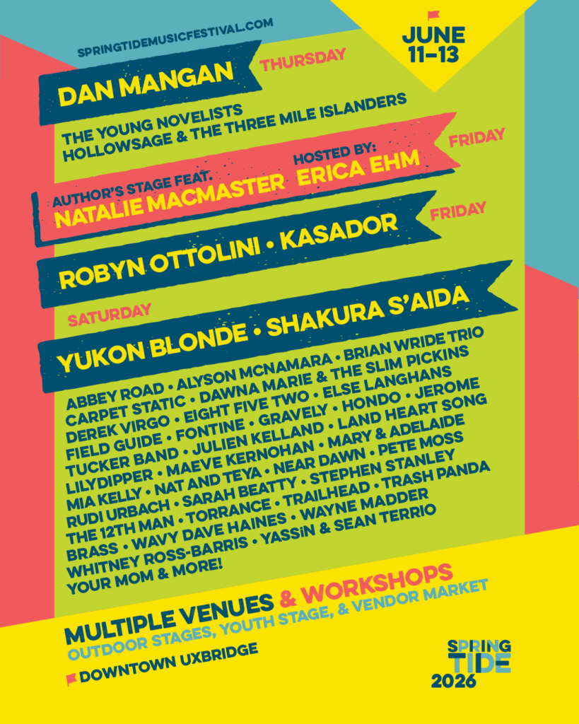 Springtide Music Festival’s annual three-day celebration of community and music to Uxbridge, Ontario on the second weekend in June, featuring a wide range of musical genres and over 60 Canadian acts in a diverse set of downtown venues. Weekend passes and single venue events on sale now!
